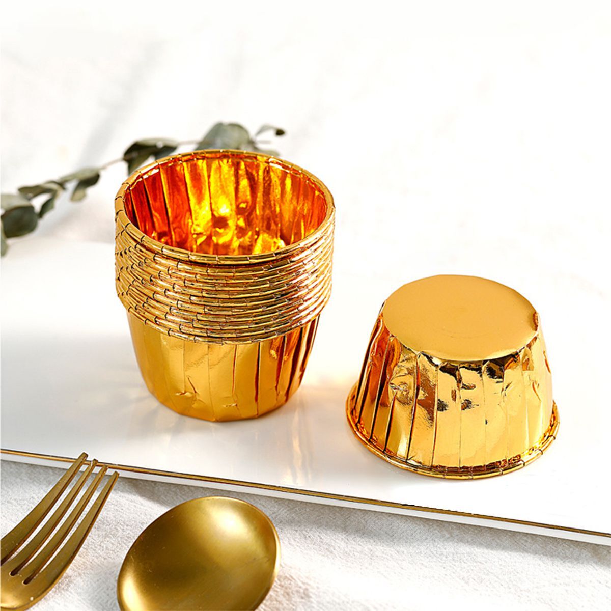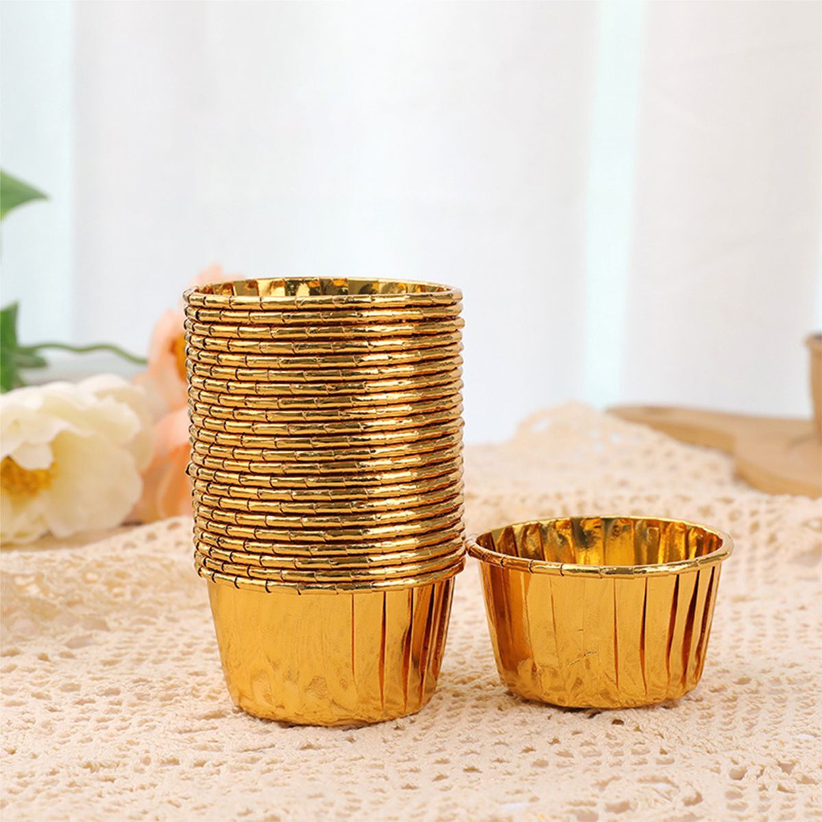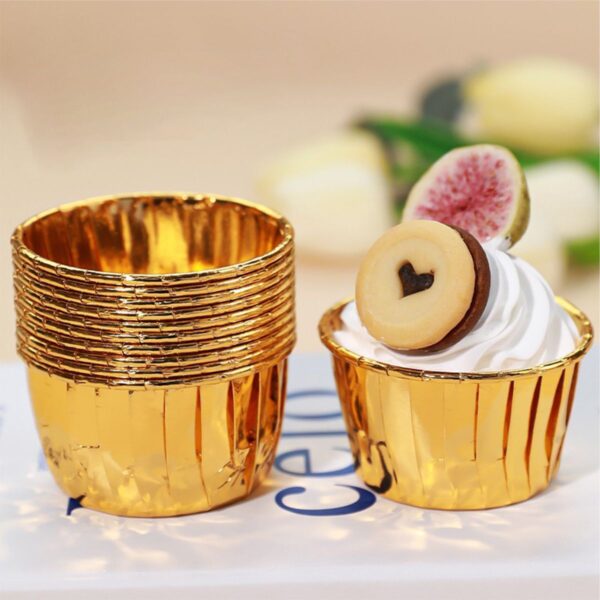 Az arany muffin papír formák – 50 db-os készlet praktikus és dekoratív megoldás muffinok, cupcake-ek vagy mini desszertek sütéséhez. Ötvözik az elegáns megjelenést és a megbízható funkcionalitást, ideális otthoni és professzionális használatra.