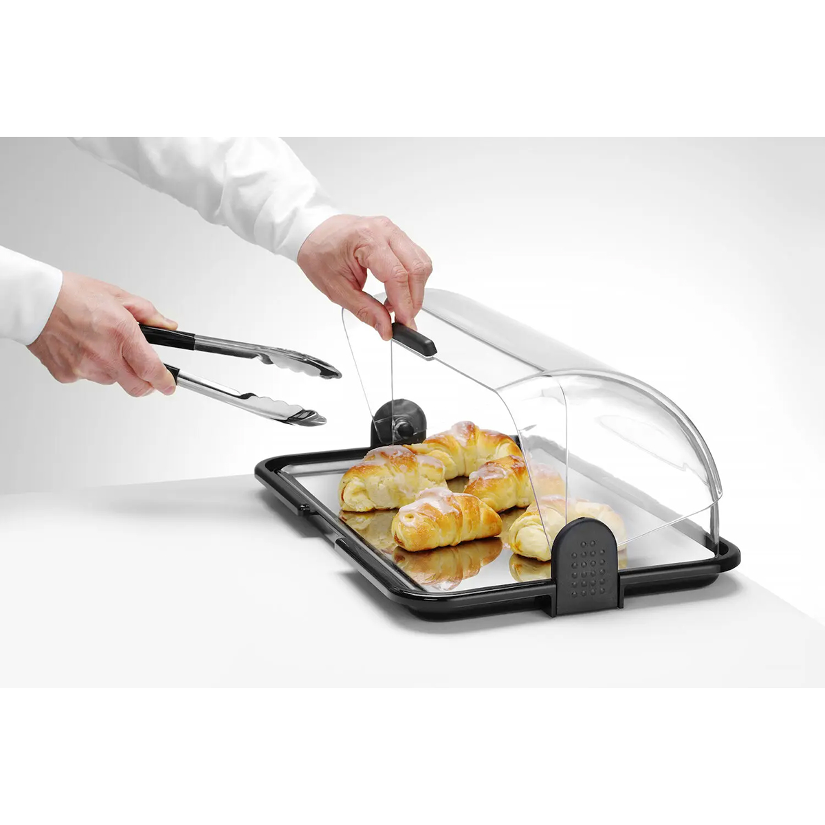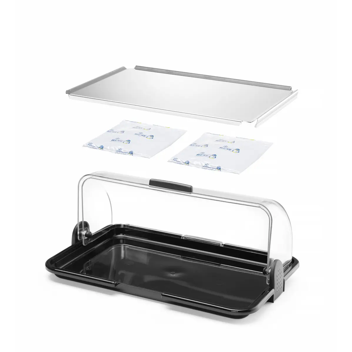 Az átlátszó, feltekerhető fedél kényelmes hozzáférést biztosít mindkét oldalról, a rozsdamentes acél konstrukció pedig hosszú élettartamot és egyszerű tisztítást garantál. A készlet tartalmaz két hűtőgélt, amelyek segítségével könnyen válthat a hűtési és melegítési üzemmód között.
