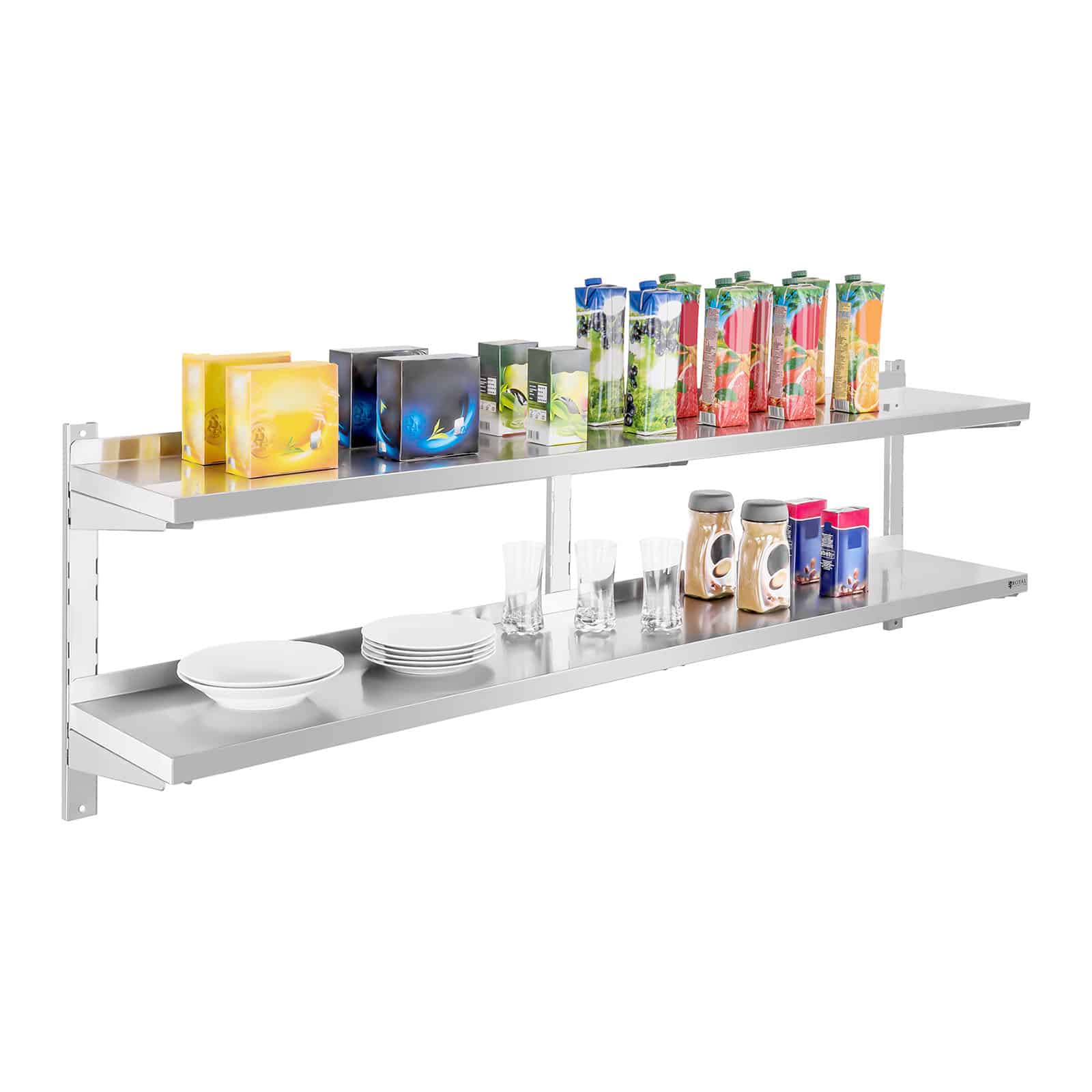 A fali polc – 2 polc – 180 cm a Royal Catering cégtől egy praktikus vendéglátóipari bútor, amely lehetővé teszi a munka jobb megszervezését a professzionális konyhákban és a maximális kihasználást. Az RCWR-180.2 azt jelenti, hogy az összes szükséges felszerelés, tartozék, termék és alkatrész mindig kéznél van. Legnagyobb előnyei a funkcionalitás, a tartósság és a vonzó ár.