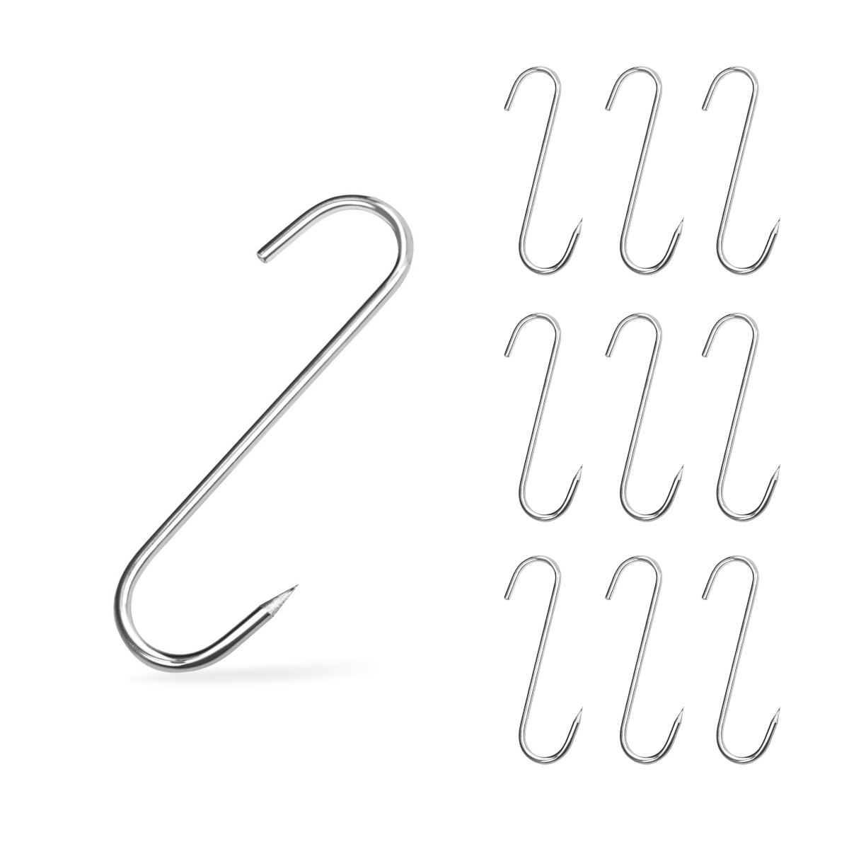A 13,5 cm-es hegyes füstölő kampók ideálisak hús, kolbász, hal vagy más élelmiszerek felakasztásához házi és professzionális füstölés közben. Az éles hegy megkönnyíti az átszúrást, az S alakú kialakítás pedig biztosítja a stabil felfüggesztést füstöléskor vagy szárításkor.