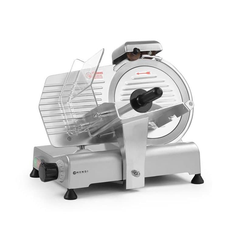 Hús- és felvágottszeletelő gép – 250 mm | Hendi 210215 egy professzionális konyhai vonalas szeletelőgép a Hendi cégtől. Ideális a vendéglátó- és hentesipar számára. Termékeink magas minősége garancia az elégedettségre.