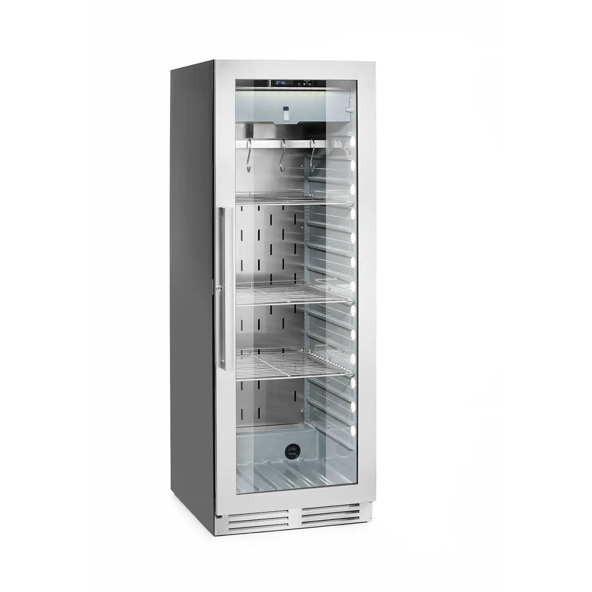 - Hatékonyság – a digitális vezérlőrendszer lehetővé teszi a hőmérséklet és a páratartalom pontos beállítását, így ideális környezetet biztosít a hús száraz érleléséhez, tökéletes textúrával és intenzív ízzel