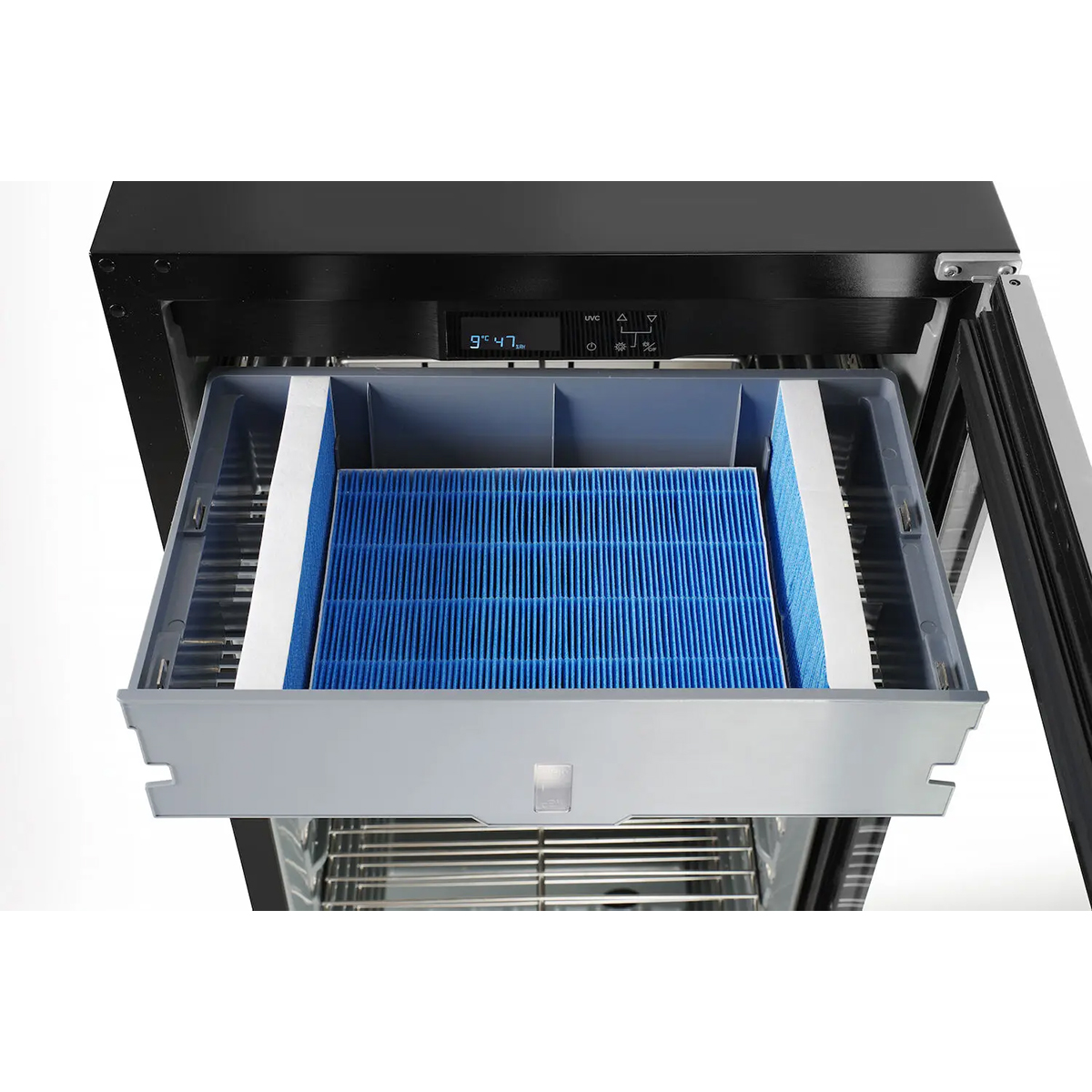 - Higiénia – beépített UVC sterilizáló lámpa akadályozza a baktériumok és penészgombák kialakulását, biztosítva a higiénikus környezetet