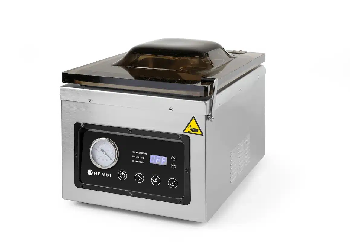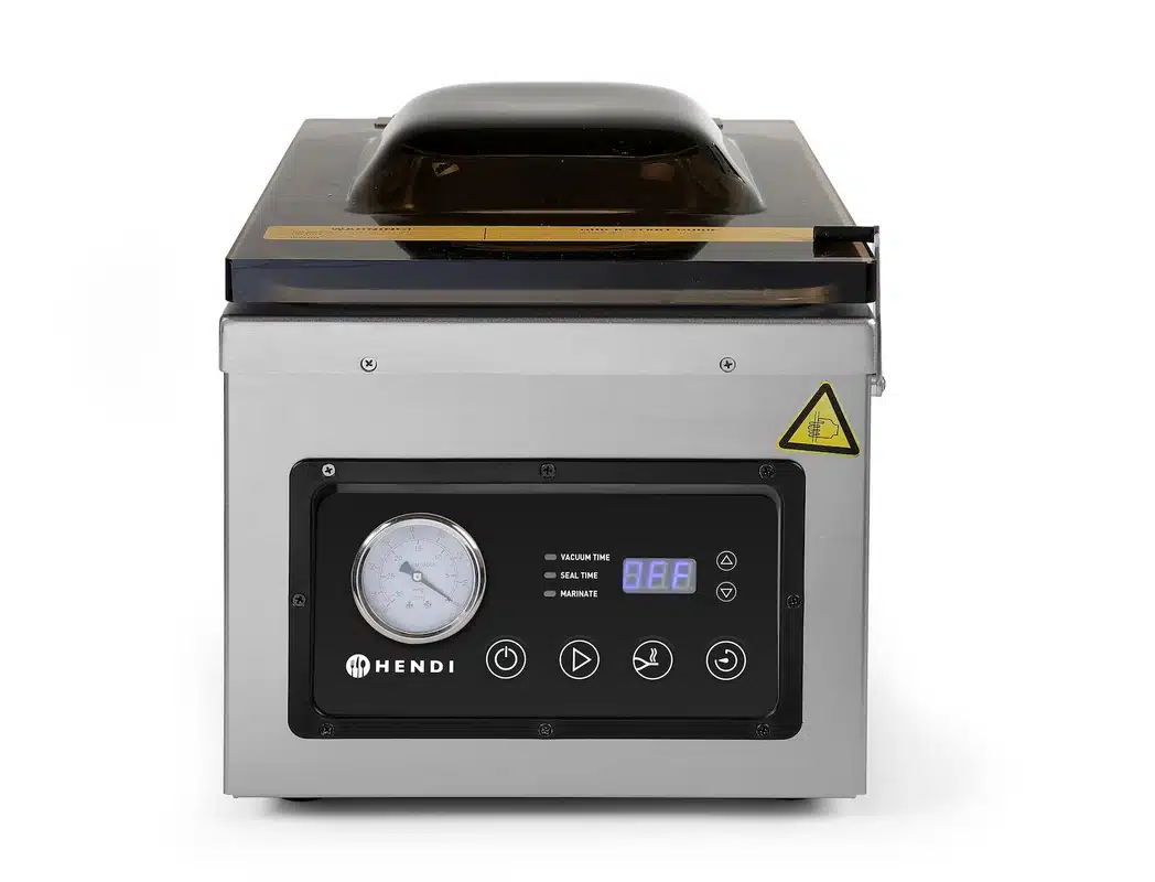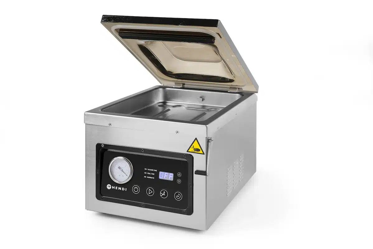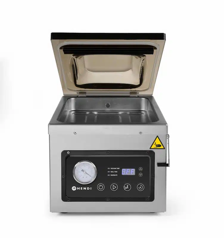 Vákuumcsomagoló gép – kamra – 260 mm | Hendi 201428 egy funkcionális gép, amelyet számos iparágban használnak. Különösen hasznos a gasztronómiában és a háztartási konyhákban az élelmiszerek hermetikus csomagolásához.