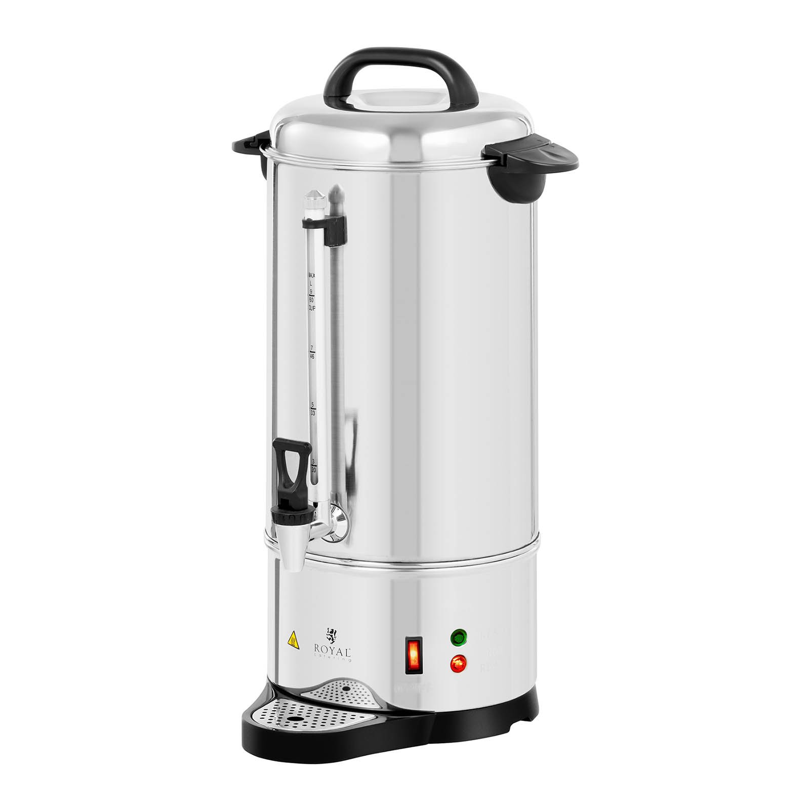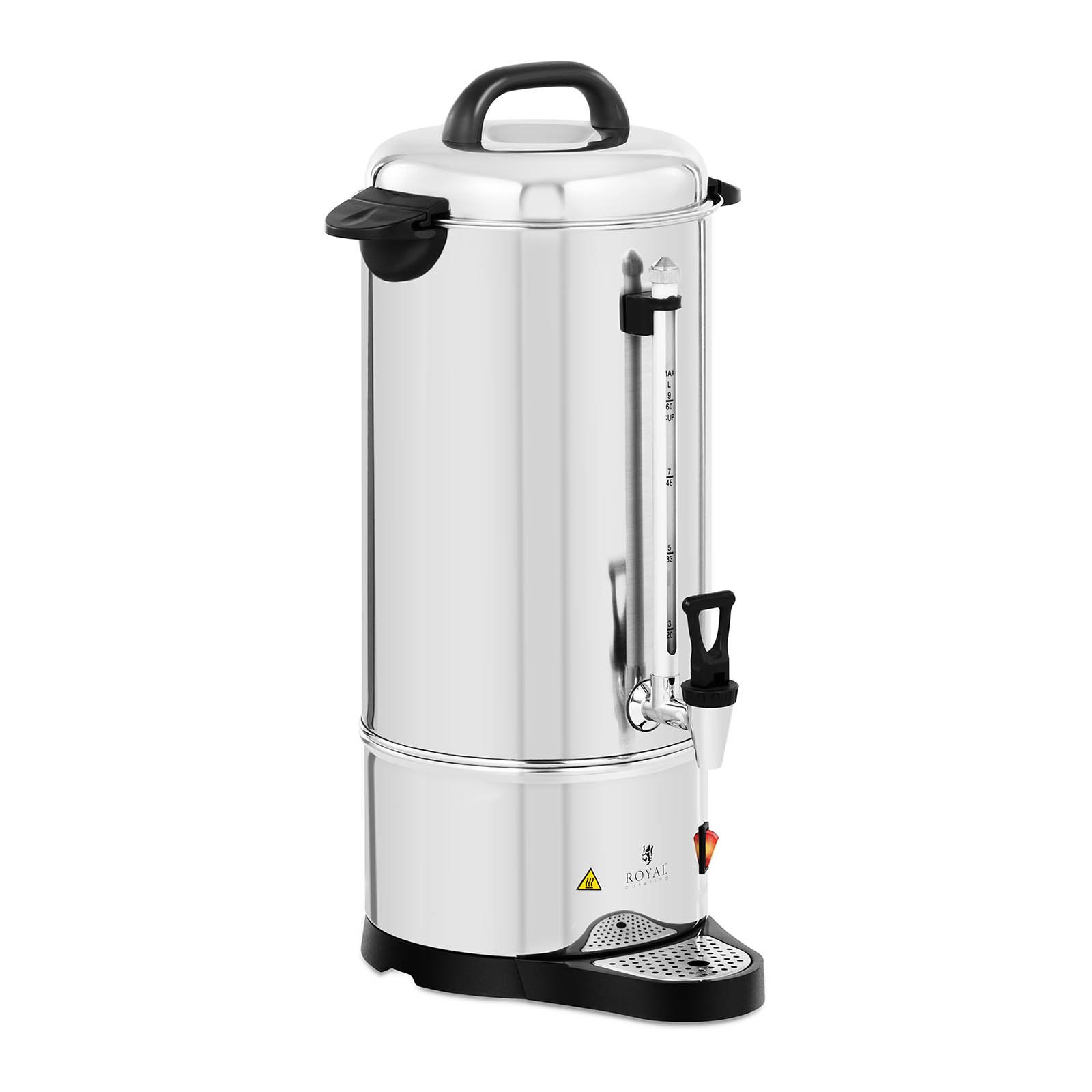 Szüksége van egy olyan gépre, amely képes lépést tartani a kávé mennyiségével a vásárlói számára? Akkor a Royal Catering RC-CU9 kávéfőzője a tökéletes termék az Ön számára. A gép nem csak kávéfőzéshez, hanem finom teák vagy egészséges gyógynövényes főzetek elkészítéséhez és melegen tartásához is ideális. A 9 literes elektromos kávéfőzővel időt takaríthat meg a nagy mennyiségű kávé elkészítésekor. Tartsa ügyfelei vagy alkalmazottai energiával egész nap.