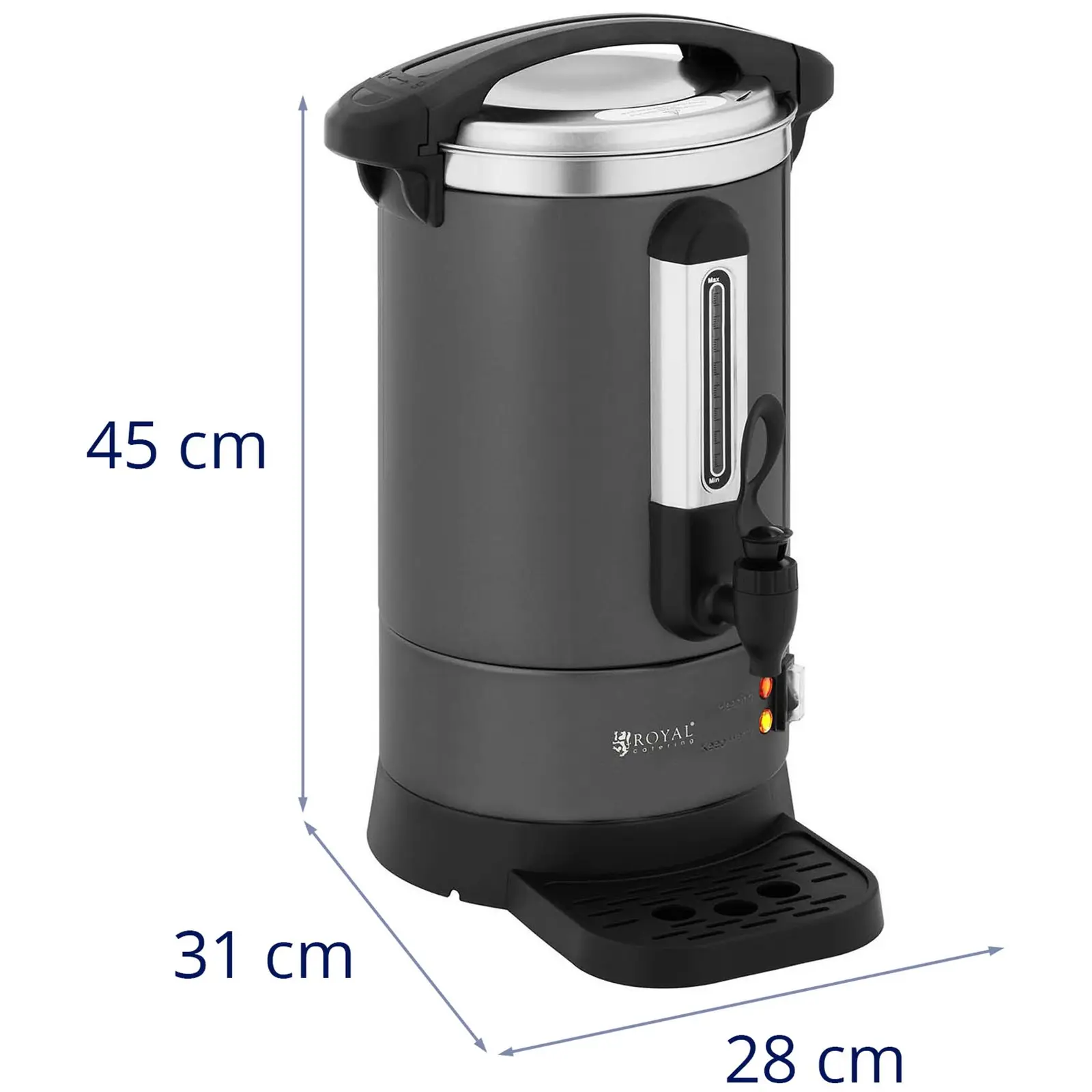 Szüksége van egy olyan gépre, amely könnyedén megbirkózik vásárlói kávéfogyasztásával ? Akkor a Royal Catering RC-WBDWTC6G normál kávéfőzője pontosan a megfelelő gép az Ön vendéglátóipari tevékenységéhez. Ez a könnyen kezelhető 6 literes kávéfőző segítségével nagy mennyiségű kávét készíthet, és egész nap a vendégei vagy kollégái rendelkezésére áll.