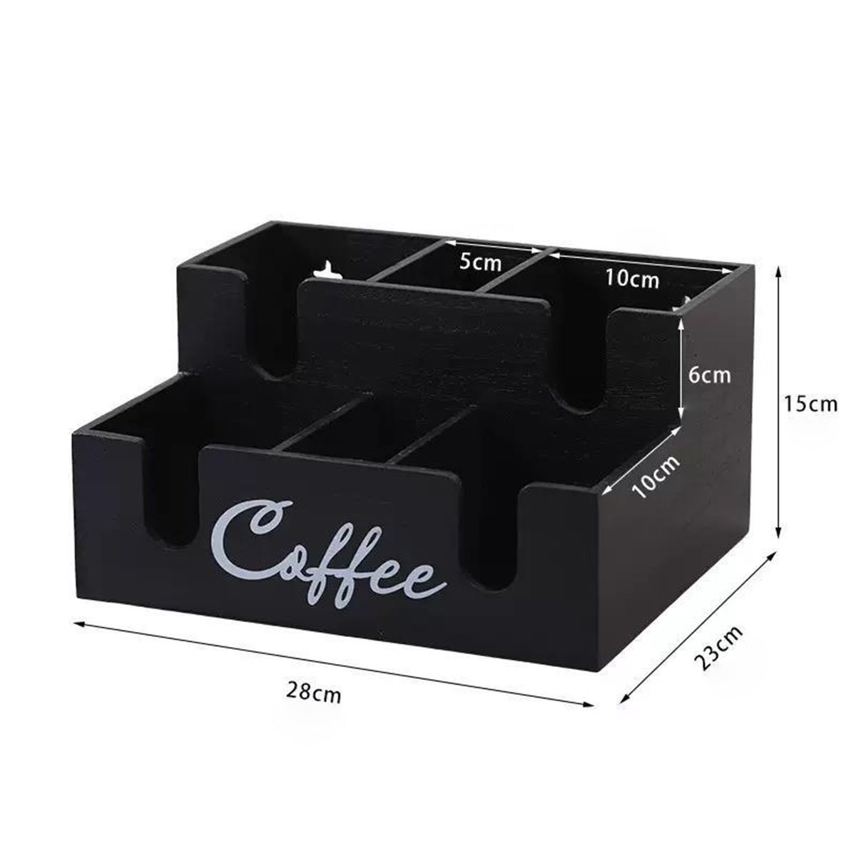 Ez a praktikus kávéorganizáló ideális megoldás a kávésarok átlátható rendszerezéséhez. Több rekeszének köszönhetően könnyen szétválogathatók benne a poharak, fedelek, keverőpálcák, cukor, teafilterek és a kávékapszulák is. A minőségi, elegáns fekete színű fa kivitel mutatós a pulton, és természetesen illeszkedik modern és klasszikus enteriőrbe egyaránt.