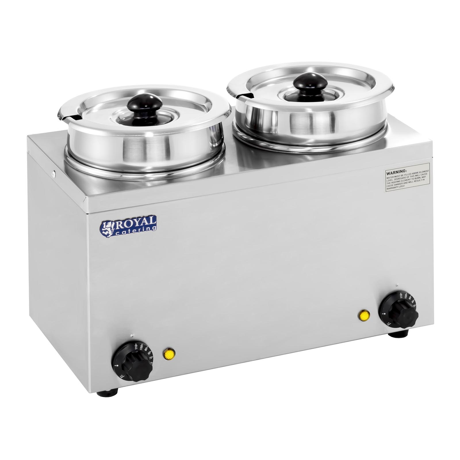 A Levesállomás – 2 x 2,75 l – 300 W | RCBM-1/4R a Royal Catering gyártótól egy sokoldalú levesállomás, amely éttermekben, büfékben, büfékben, szállodai konyhákban és például banketteken, kempingekben vagy nyári táborokban használható. Az RCBM-1/4R alkalmas továbbá zöldségraguk, pörköltek, melegítő breton típusú bab és hasonló ételek elkészítésére.