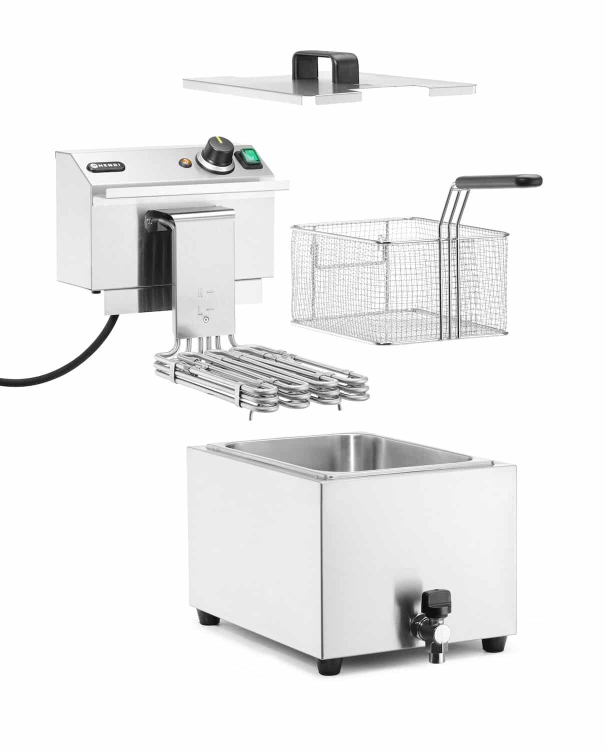 A Hendi Profi Line kiöntővel ellátott fritőz egy olyan készülék, amellyel sokféle snacket, például ropogós chipseket, zöldségeket vagy tavaszi tekercseket készíthet. Ideális bárok és gyorséttermek számára. A nagy, 10 literes kamrával és kifolyócsővel rendelkező készülék lehetővé teszi nagy mennyiségű sült és snack gyors elkészítését.
