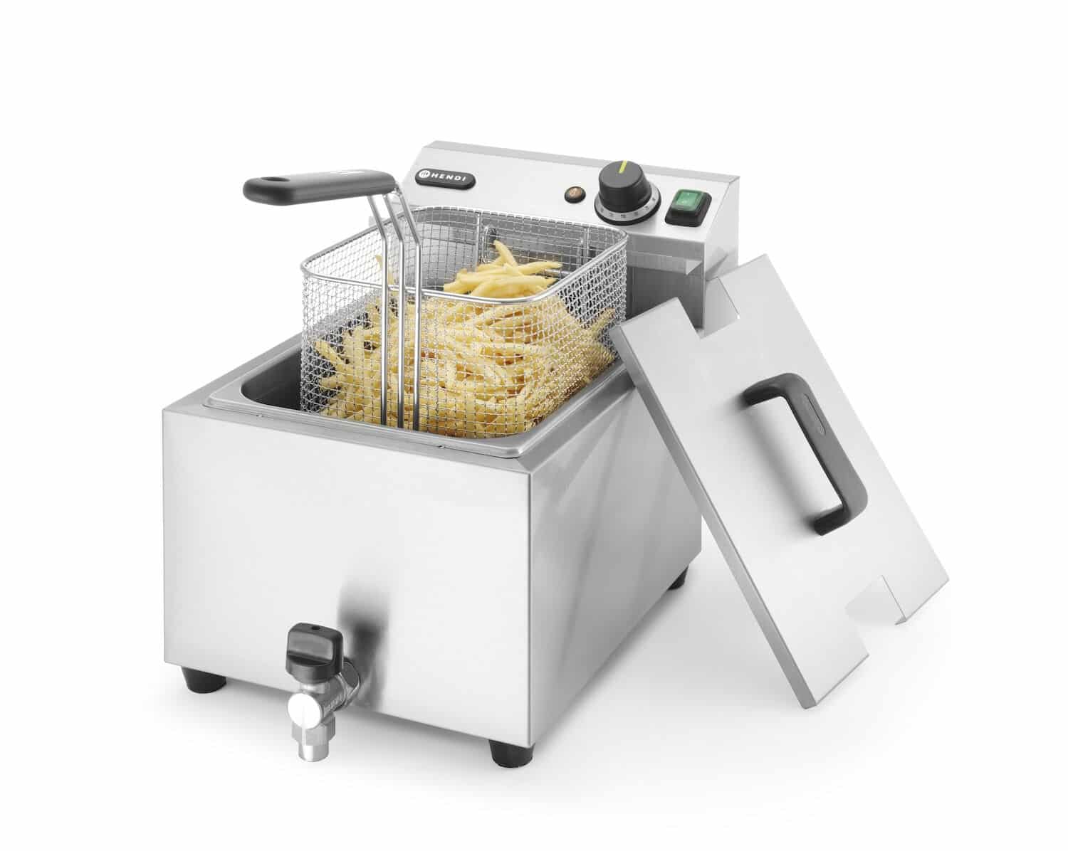 A Hendi Profi Line fritőz lefolyócsappal egy modern megoldás a sült finomságok gyors és praktikus elkészítéséhez.