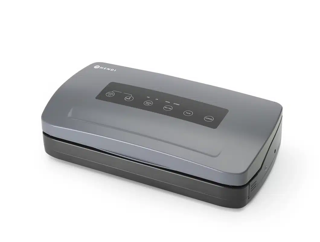 A vákuumcsomagoló gép tekercses adagolóval – sínes – 100 W | Hendi 201626 egy funkcionális gép, amelyet számos iparágban használnak. Különösen hasznos a gasztronómiában és a háztartási konyhákban az élelmiszerek hermetikus csomagolásához.