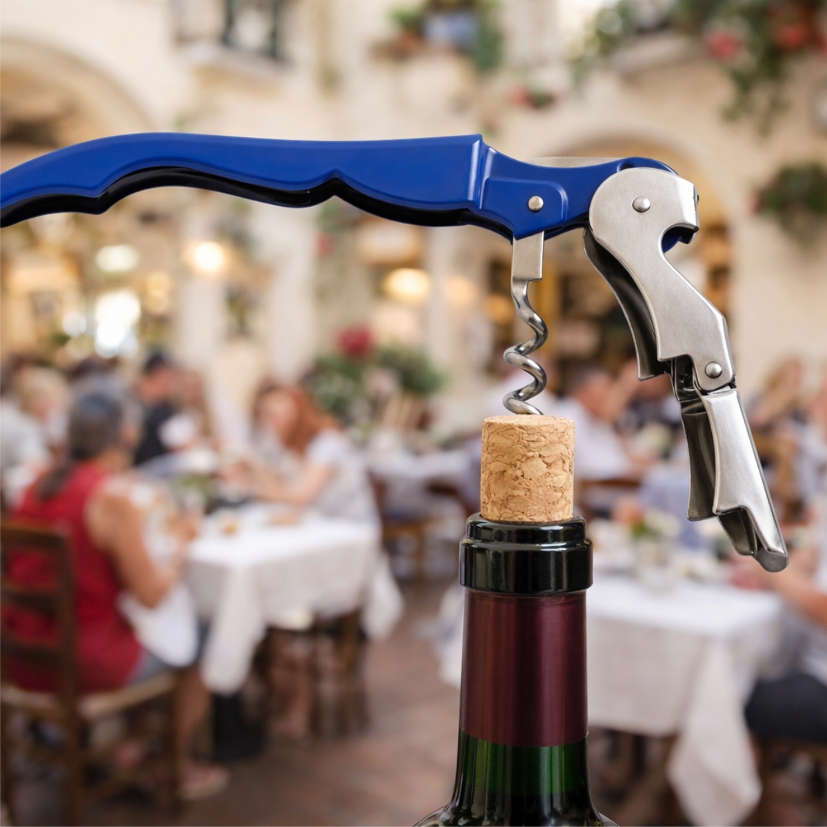 A bornyitó tartós rozsdamentes acélból készült, amely hosszú élettartamot és megbízható működést biztosít a mindennapi használat során. A formázott markolat javítja a fogást, és lehetővé teszi a borosüvegek kényelmes kinyitását felesleges erőkifejtés nélkül.