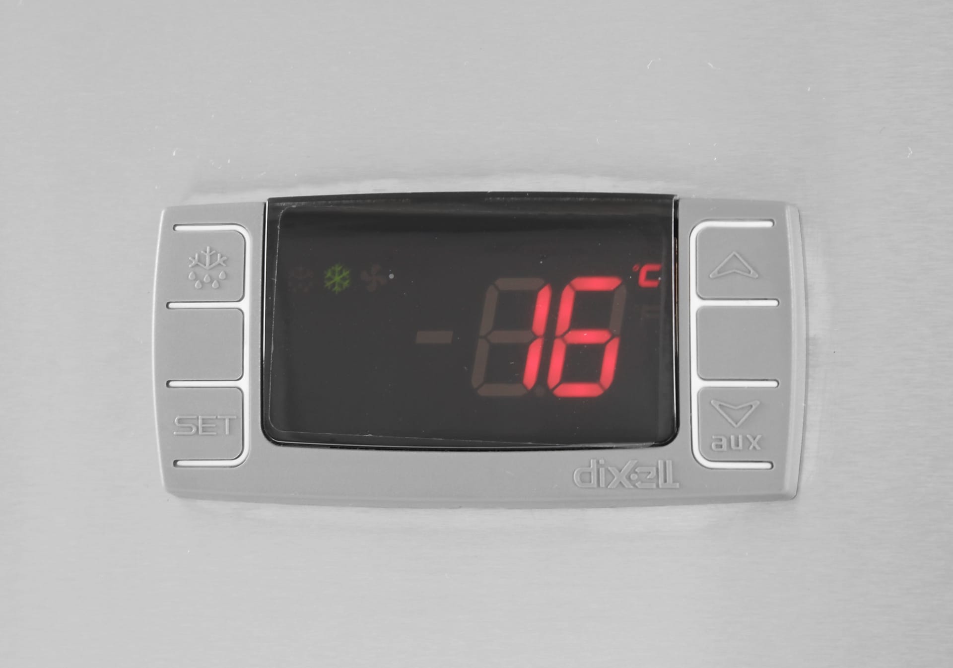 A Profi Line fagyasztószekrény belső és külső burkolata kiváló minőségű AISI 430 rozsdamentes acélból készült (a hátsó külső fal horganyzott acélból), ami hosszú élettartamot, könnyű tisztíthatóságot és professzionális megjelenést biztosít.