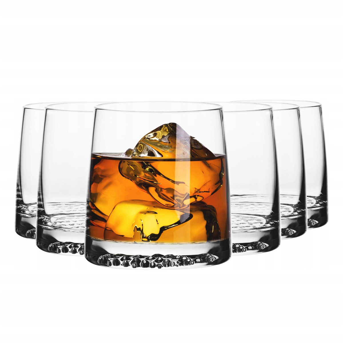 A Whisky pohár – 300 ml – 6 db-os készlet modern formájával és a jégkristályokra emlékeztető, markáns dombornyomott talpával tűnik ki. A vastag alap nagyobb stabilitást biztosít, és látványos fényjátékot hoz létre, amely kiemeli az ital színét. A poharak kényelmesen foghatók, és alkalmasak whiskyhez, bourbonhöz, rumhoz és koktélokhoz is.